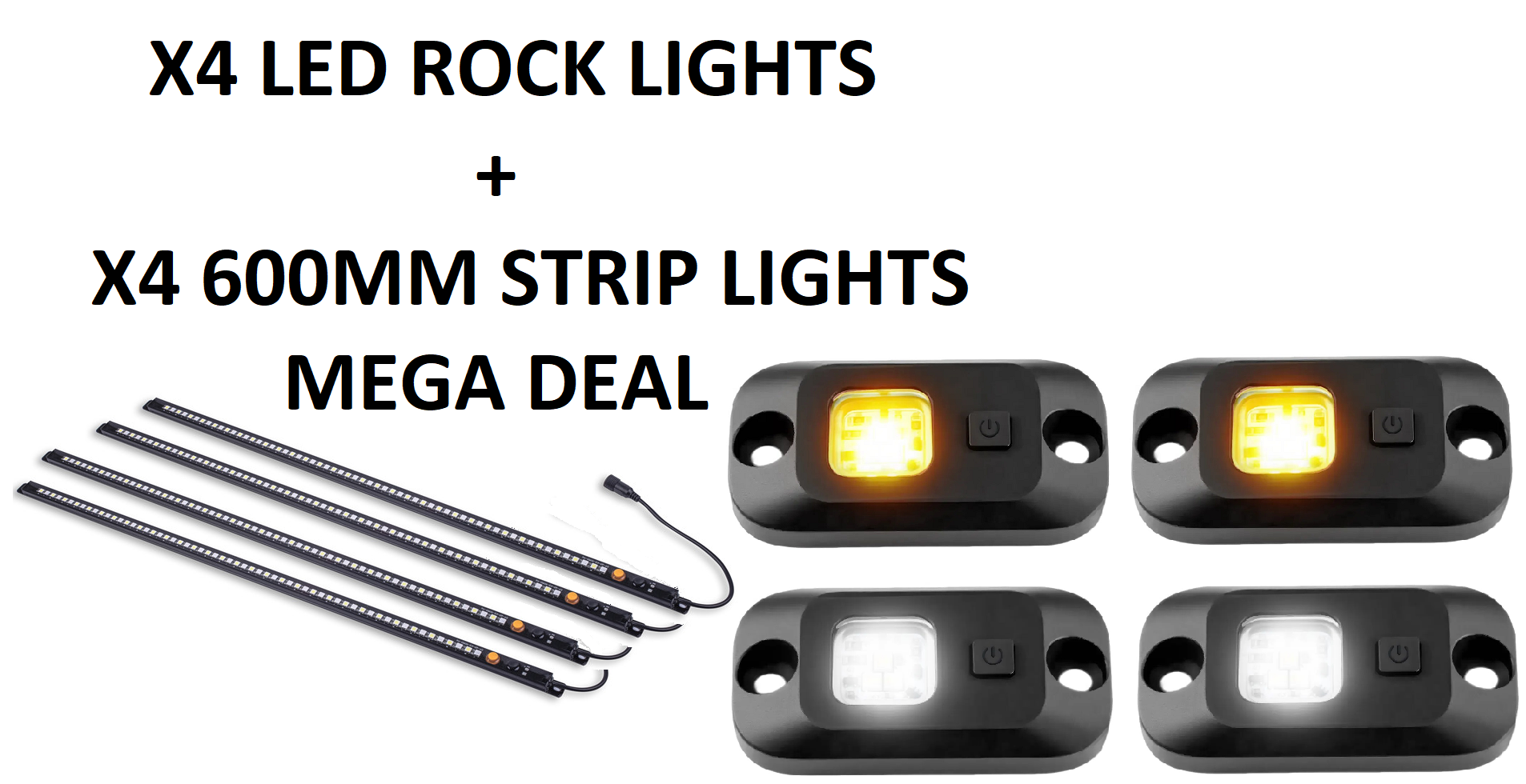 X4 LED ROCK LIGHTS WHITE/AMBER DIMMABLE
