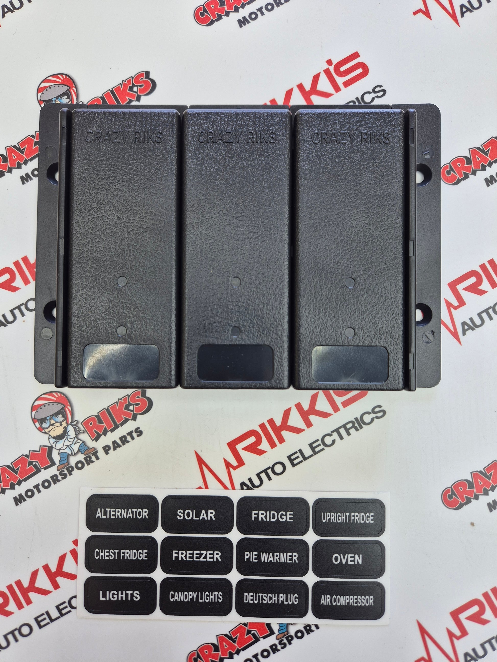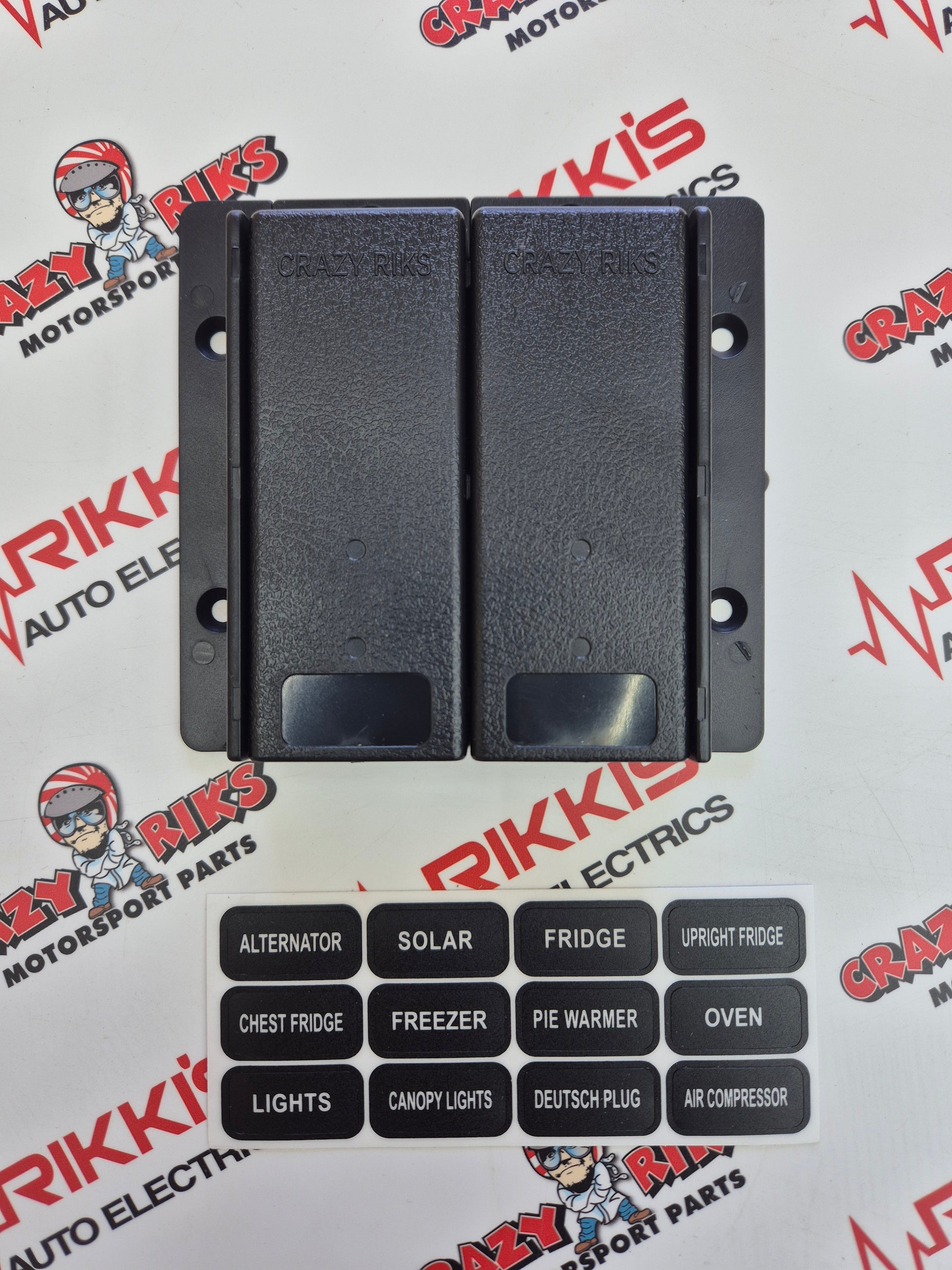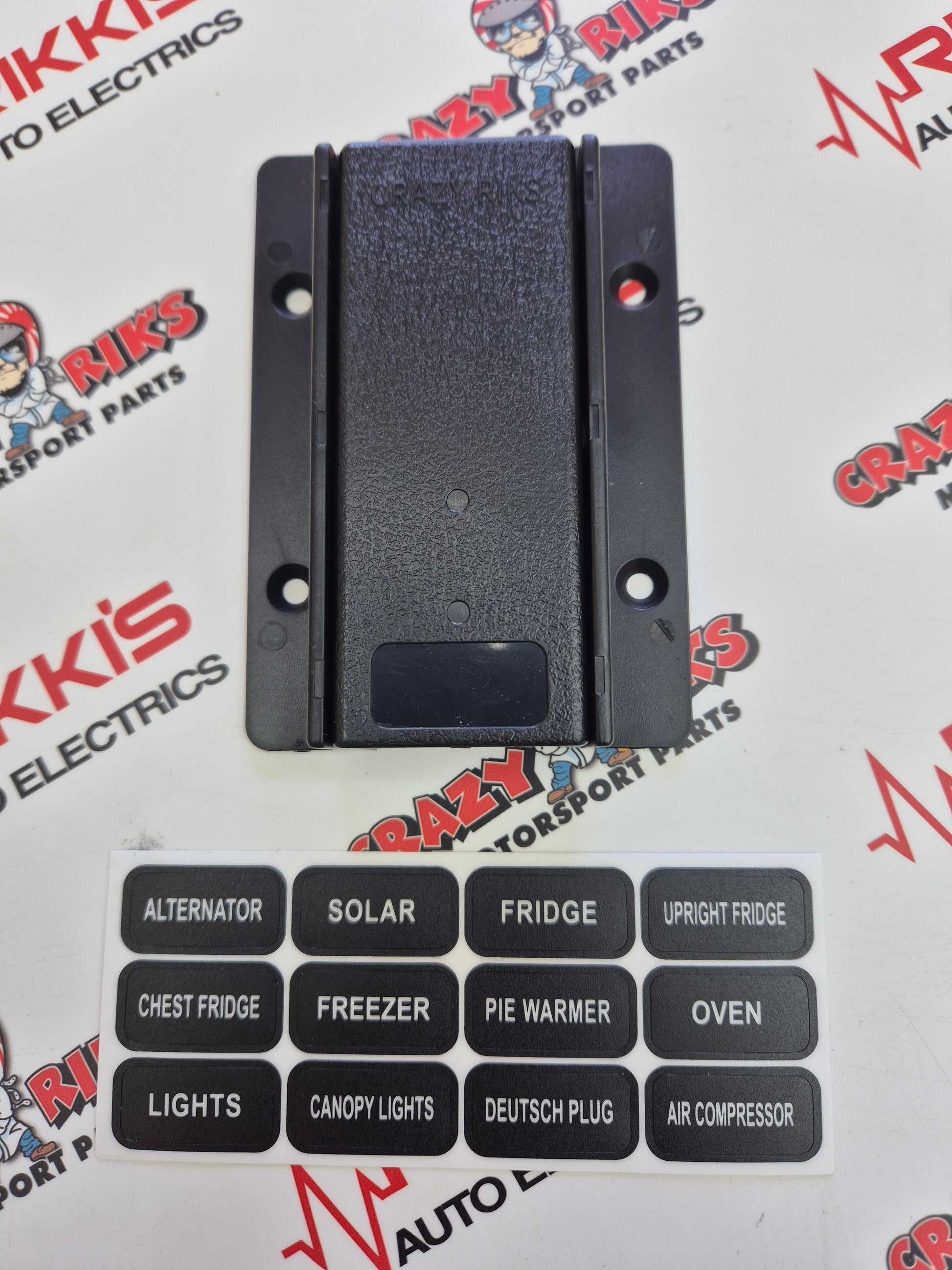 Our product is also designed for the inside of canopy backboards for people wanting somewhere to plug in fridges, air compressors, 12v ovens and other higher powered devices neatly and securely. Each cover sold comes with 12x stickers for common applications like FRIDGE, OVEN, PIE WARMER, UPRIGHT FRIDGE, FREEZER, AIR COMPRESSOR and others for your convenience.