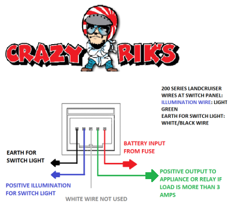 We recommend a 'Power' switch to turn on the illumination of all the other switches and also to trigger volt gauges, air bag man gauges, relays or any 'ignition switch' requirements in the rear of your 4x4